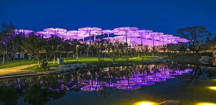 花傘設計不只美觀,還有強大的功能和獨特的匠心。考慮到世園會舉辦時正值北京炎熱暴晒的夏季,為了避免遊客在進入場館時因排隊過久而出現中暑的狀況,建築師在若干朵“花傘”下留出了開放的公共空間,像一個城市遮陽傘,為人們提供一個舒適的駐足停留、休憩區域。