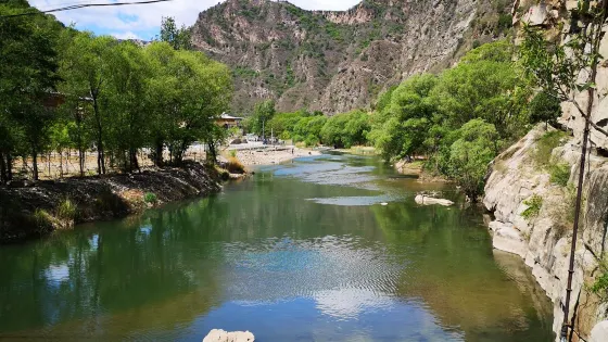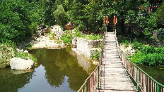還有蜿蜒的“扁擔溪”,各種奇山怪石。山內獨特的氣候條件和地質環境培育了茂盛的自然植被和豐富的野生果木品種,風景異常秀美。