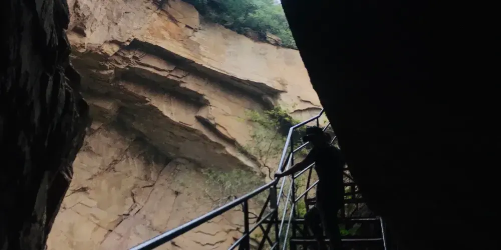 瀑布龍潭既雄偉壯觀,又湍急驚險,瀑布轟鳴,潭水急旋,峯崖陡峭,谷深路窄。登梯走橋時可從險中觀景,遊人追求險中景,甘願“鋌而走險”不臨險境,便不能領略險中景的妙趣,險中景給遊人增添了力量,大有不到真潭非好漢的感受。