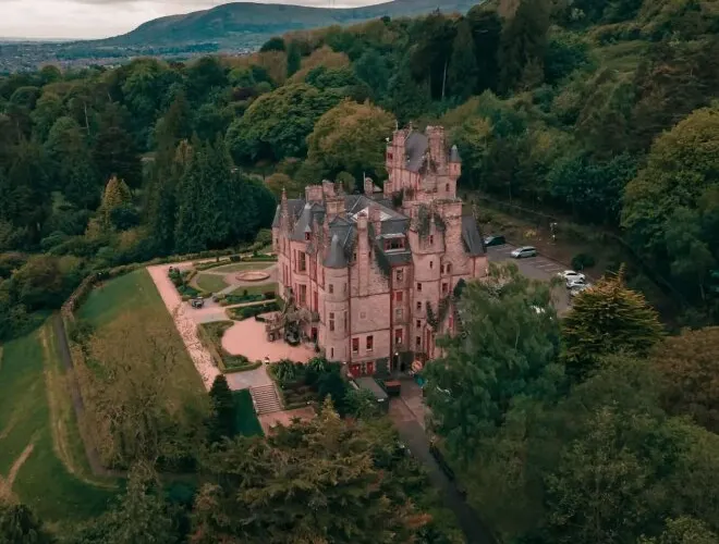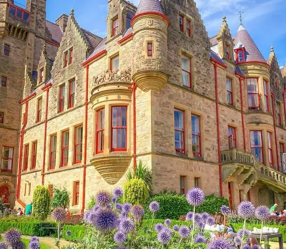 貝爾法斯特城堡屬於蘇格蘭式的豪華建築風格,為19世紀70年代的多尼戈爾侯爵所建。城堡外有一座美麗的花園和一個文化中心,文化中心內長期展出有關城堡的一些展品。城堡位於凱弗山上,能夠看到貝爾法斯特市和貝爾法斯特湖的壯麗風景。該城堡是舉行會議、婚禮、慶典等活動的絕佳場所。城堡內其它設施還包括酒窖餐廳和酒窖古董商店。