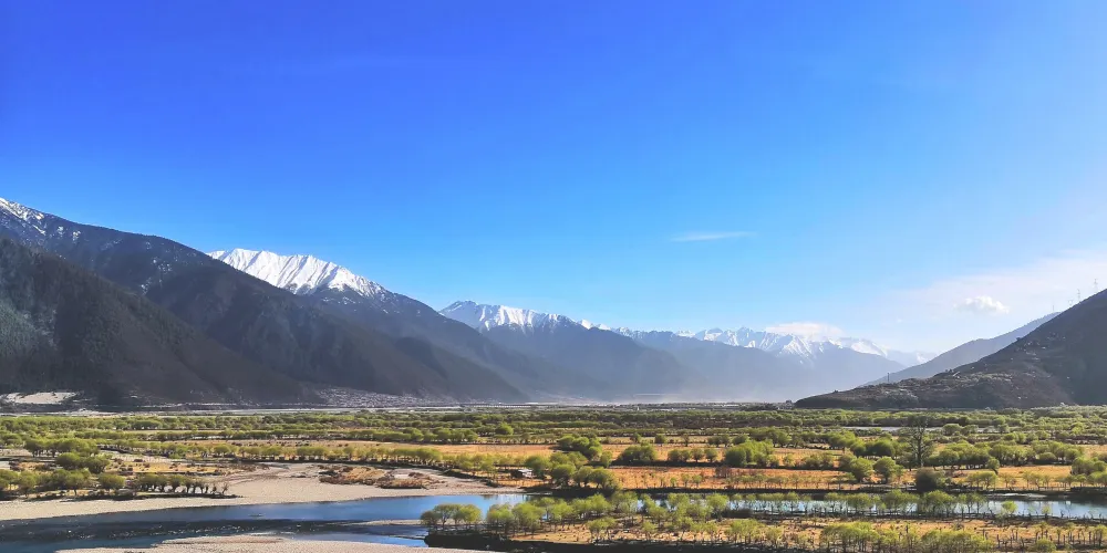 尼洋河流經林芝,水量充沛,這裏植被豐富,樹木葱鬱,風景很美,還可以看到很多野生鳥類。