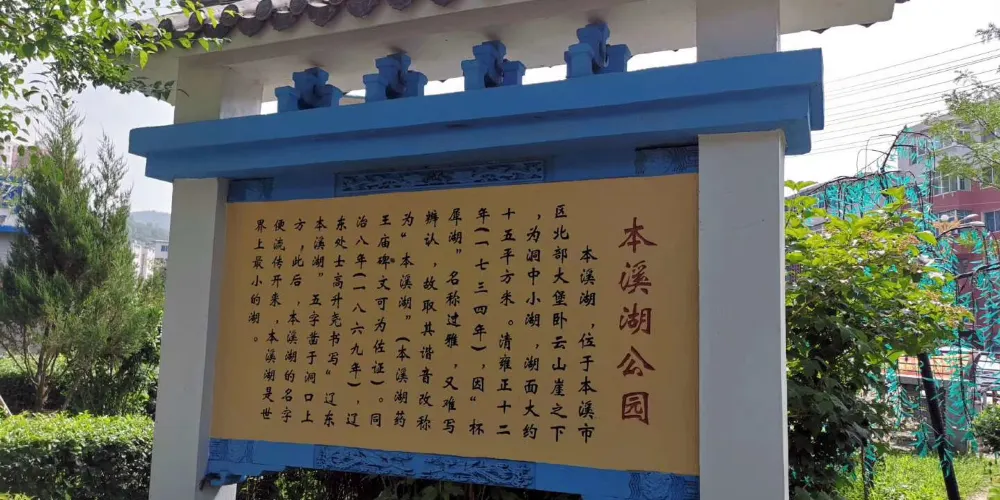 本溪湖原名“杯犀湖”,是本溪的發源地,清雍正年間改稱本溪湖。本溪湖為一洞中湖,該湖形似犀角,外闊內窄。洞內水面20餘平方米,有“世界最小的湖”一說。以本溪湖為中心建立的公園小巧精緻。本溪湖每年五月-十月間進入旺水期,清澈涼爽的泉水由地下溶洞噴湧而出,注入水面6000平方米的人工湖。人工湖水面平靜無波,湖水清澈,岸邊垂柳倒映水中,泛舟湖上,心曠神怡。
