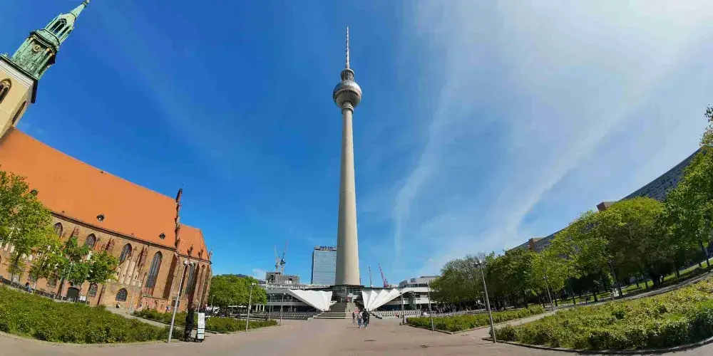這座建於1966-1969年間的電視塔,高365米,塔身頂端的鋼架結構大圓球閃閃發光,從柏林城內的任何一個街區都能看見,猶如柏林城之燈塔。不僅如此,您可以一邊享受美味佳餚,一邊欣賞壯麗的景色。此外,您可以進一步沉浸在我們的VR體驗中,讓您在虛擬現實中探索柏林的地標,為您的遊覽增添一層額外的深度。