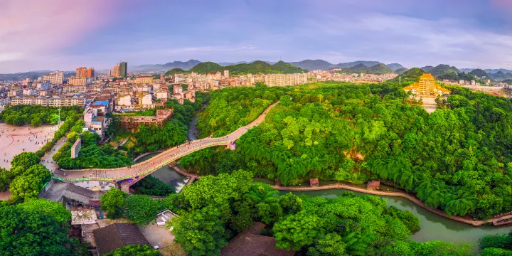 邊城公園位於湘西花垣縣,公園乾淨整潔,綠樹成蔭,不少市民會選擇來這裡鍛煉,唱歌。春季邊城公園內紅、白櫻花競相開放,與園中的曲橋、流水等構成一幅美麗的、充滿生機的春天自然畫卷,是市民遊客休閒放鬆的好去處。