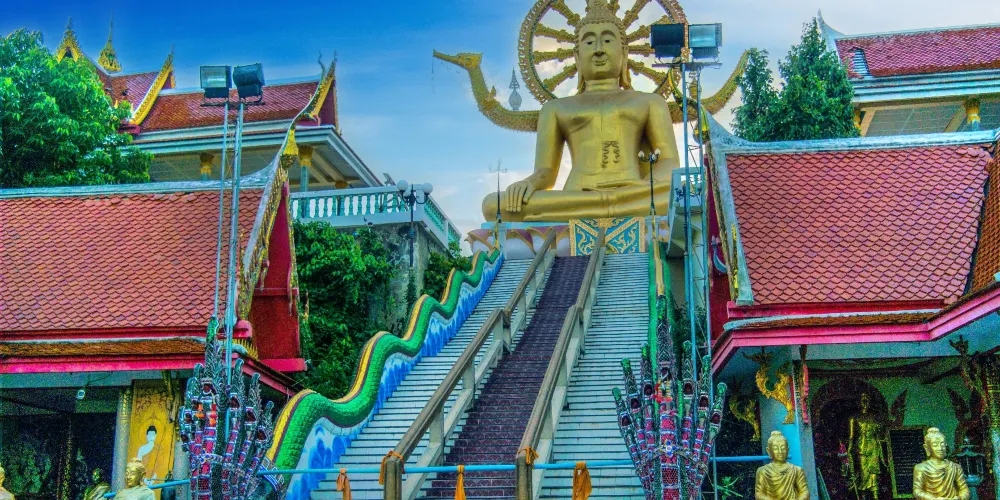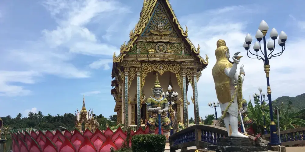 則評價千手觀音廟位於蘇梅島北部,是蘇梅島上比較新的廟宇。廟宇及多座佛像建在人工的湖上,很有氣勢。這間寺廟在人工湖畔擺設有兩座巨大的佛像。一側是坐在蓮花座上的彌勒佛,另一側是十八手觀音像。兩座佛像的中間是一座廟宇,寺廟保持著泰式寺廟一貫的精緻小巧風格,金色的尖頂,琉璃的瓦牆,色彩艷麗特別好看。