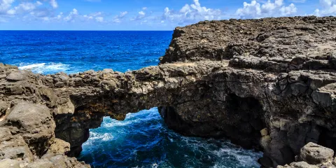 這裡繁茂的熱帶樹林貼近海岸,白色的沙灘在海浪的拍撫下來來去去。遠處時而高漲的海浪順風而來,打在礁石上,發出震撼的呐喊,打破近處的一片寧靜,讓人不由得興奮驚呼。