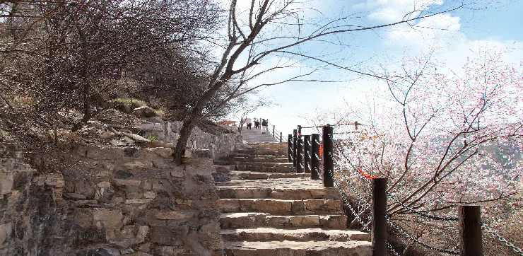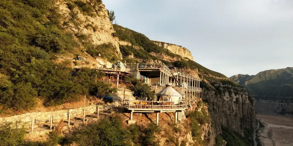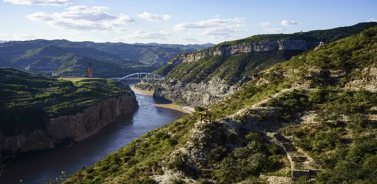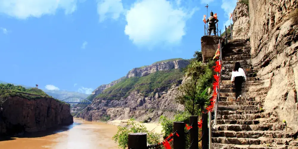 黃河大梯子崖位於山西省河津市,黃河龍門與石門之間。北望石門,南眺龍門,西臨黃河,東居呂梁,山河壯麗,風景獨特。梯子崖其核心景觀—梯子崖,據相關資料記載,年代久遠,可追溯到北魏時期,壁上鑿痕雖歷經風雨,但清晰可辨。它是在懸崖邊依地勢,人工開鑿的之字形古棧道,由365個台階組成,梯寬四五尺,每個台階有七八寸高。在空中鳥瞰梯子崖的整體形態就如在一塊豎長的石頭上雕刻出365個台階一樣,地形險峻、風景獨特、巧奪天工,令人震撼。梯子崖上的紅色往昔:1938年12月23日,盤踞河津的日軍,以七、八聯隊附滕田大隊為基幹,加上偽軍等共四、五千人,大炮二十多門,由空軍配合進攻新八師東龍門山及禹門口前沿陣地,新八師官兵奮勇抵抗,多次打退日軍進攻,日方傷亡慘重,新八師前沿陣地官兵傷亡亦達70%以上,其中守衞雲中寺的一個加強排,全部壯烈犧牲。前沿多處陣地一度失手。30日,新八師朱振民副師長命令二十三團翻山越嶺,由師家灘渡河增援,從龍門山側面(大梯子崖)向日軍發起攻擊,收復龍門山所有陣地。此役對日寇予沉重打擊,斃傷日軍200多人,迫使其龜縮河津、秸山兩地。新八師陣亡連長以下黔籍官兵271名,合葬於陝晉交界處的龍門山麓(此地在屬山西省河津縣),1987年河津縣政協在墓前修建一座紀念碑。梯子崖上的美麗傳説:傳説大禹當年治水到達這裏後遇到惡龍阻擋,無法繼續施工,於是修了黃河大梯子崖這通天的石梯,打算上天向玉帝告狀,結果天梯修好後上來發現還是上不了天庭,然後觀世音菩薩看到了,不忍心百姓受苦受難,所以點化大禹登入天庭,然後見到了玉帝,玉帝派天兵天將下來將惡龍斬殺,掃除治河障礙。大禹帶領民眾日夜奮戰,很快便鑿開龍門,使漫漫洪水流入大海。現在梯子崖上觀音佛龕旁的巖壁上留有一個赤腳印,傳説這便是大禹當時登入天庭留下的。桃花谷桃花谷,顧名思義,早春時節漫山遍野的山桃花爭相鬥艷,因以為名。谷內清靜幽雅,植被豐茂,溪流潺潺,瀑布飄然,山石地貌形態萬千。四季景色更是各有特色,春季漫山桃花爭相鬥艷,夏季滿目蒼翠,鳥語清脆,花香四溢,秋季醉人的紅葉如絲帶般飄灑在山谷的兩側,冬季萬物皆沉寂下來,積蓄力量,靜待來年,若運氣好,趕上一場飄雪,那真是彷彿可以洗滌心靈的美了。明修•棧道(玻璃棧道)明修·棧道:「明」取明慧之意,「修」為修行之意,「明修」即為明慧修行。棧道由108塊三層鋼化玻璃組成,恰與108顆佛珠數量相一致,我們將108顆佛珠的含義與其相融合,願大家在人生的這場修行中都能如意自在~玻璃棧道長約230米,垂直高差約150米,是抵達桃花谷的佳路徑。途中遊客朋友在體驗空中漫步的同時,還可以欣賞飛流直下的桃花谷瀑布。