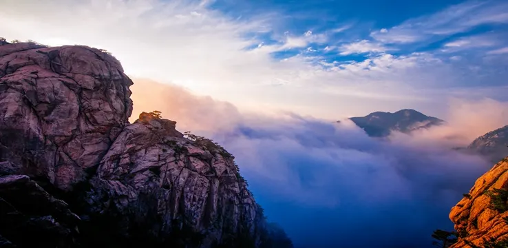 羅田天堂寨筆架山位於降風殿後,高300多米的懸崖絕壁,頂部有三個並列的巨峯,峯頂圓潤,起伏有序,形似一台高聳雲天的筆架,故名筆架山。筆架山終年曉嵐環繞,雖晴不散,謂之“筆架晴嵐”。清康熙年間“筆架晴嵐”曾被列為羅田八景之一。