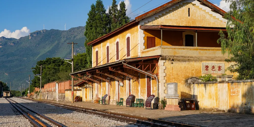 碧色寨位於紅河哈尼族彝族自治州蒙自市草壩鎮。這個建在半山腰的寂靜小山村,曾經是商賈雲集的繁華之地。這裡有紅瓦黃牆的建築,夕陽下格外美麗。此處還是電影《芳華》、《無問西東》的取景地,每年都有無數遊客慕名前來。