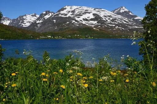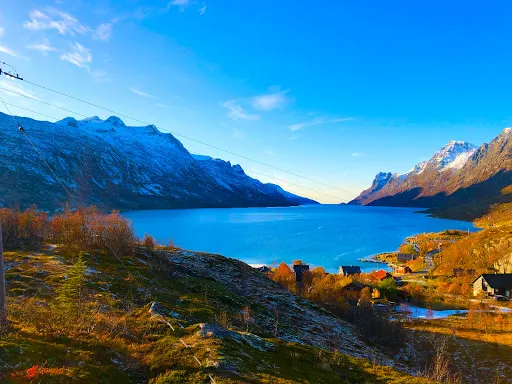 峽灣小鎮位於挪威特羅姆斯郡西海岸,是北極圈內備受推崇的自然景觀與極光觀測地。這個峽灣村被群山環抱,U型峽灣由冰川侵蝕形成,冬季積雪覆蓋的峰巒與深藍海水構成明信片般的畫面,夏季則因極晝現象呈現苔原植被與白樺林的生機。