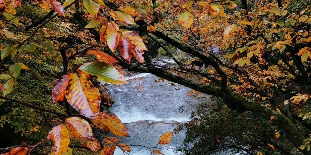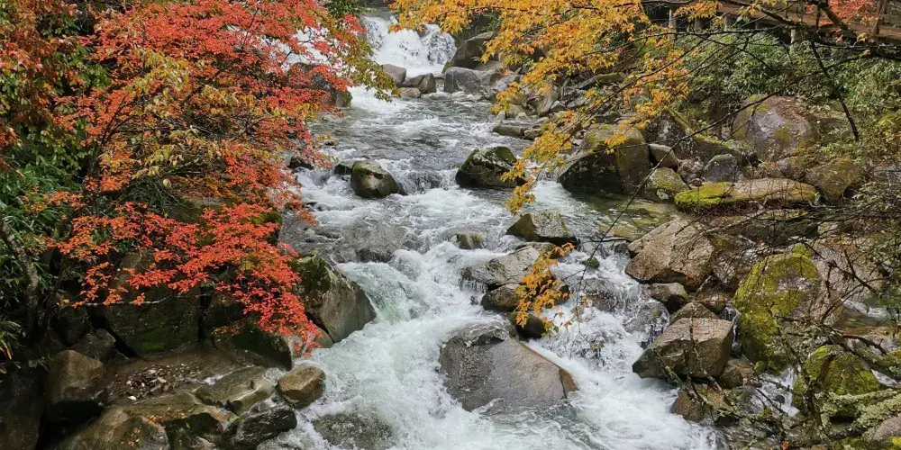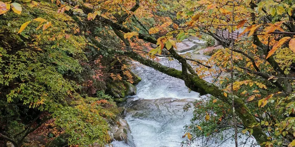 黑熊溝是米倉山森林公園的一大景區,小溪邊開闢出木板搭建的山道,與這裏的自然景觀很貼合,各色的樹葉散落在小溪中,五光十色,耀眼奪目。