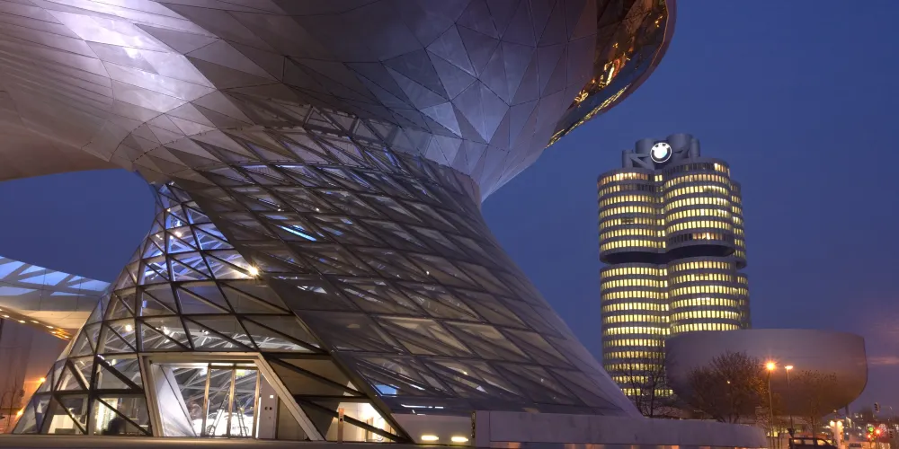 寶馬博物館位於寶馬全球總部慕尼黑寶馬品牌體驗中心,是寶馬品牌體驗中心的核心組成部分。博物館為“碗形”造型設計,它的旁邊就是寶馬“四缸大樓”總部。寶馬博物館的展廳設計為環繞式的空間,分為七個主題展區,按照不同年代和時期,展示出歷年來所產的各類寶馬汽車等種類車輛樣品,並運用現代聲、光、電、多媒體等高科技手段及圖片音像資料,提升產品展示的藝術空間,全面演繹了寶馬汽車公司的成長與發展史。