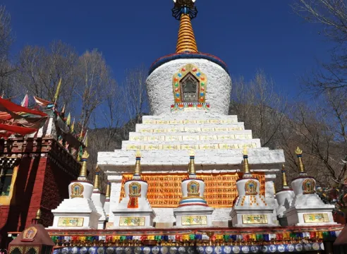 菩提塔是為了紀念釋迦牟尼修行成正覺而建立的,塔內有藏書九百多卷,還供奉有各類銅像。