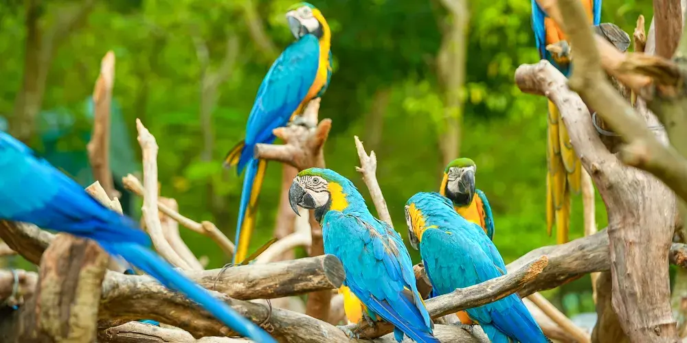 △鸚鵡迎賓,多種大型鸚鵡向你問好:藍眼巴丹鸚鵡、折衷鸚鵡、金剛鸚鵡、葵花鳳頭鸚鵡!