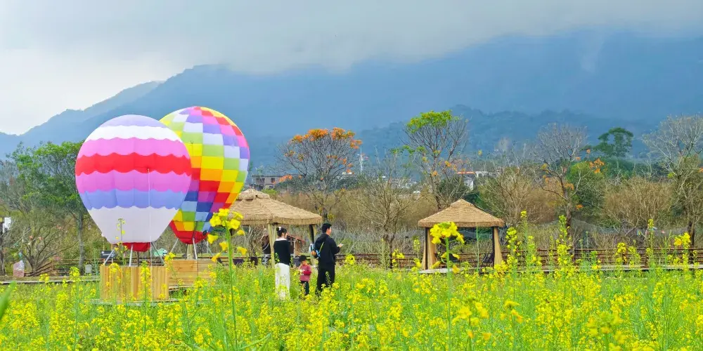浮生六季智慧農場依偎羅浮山旁,在這裡,可與多種珍稀萌寵近距離互動;漫步波斯菊與油菜花花海;觀賞精彩非遺川劇變臉秀;踏上兩大魚鱗壩體驗親水溯溪;暢玩機動與非機動遊樂設施……