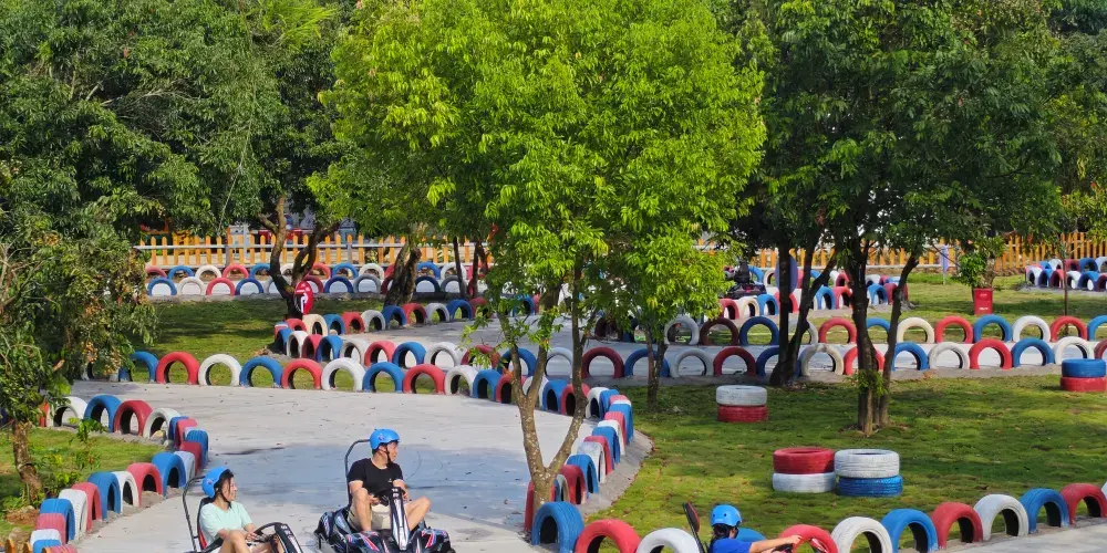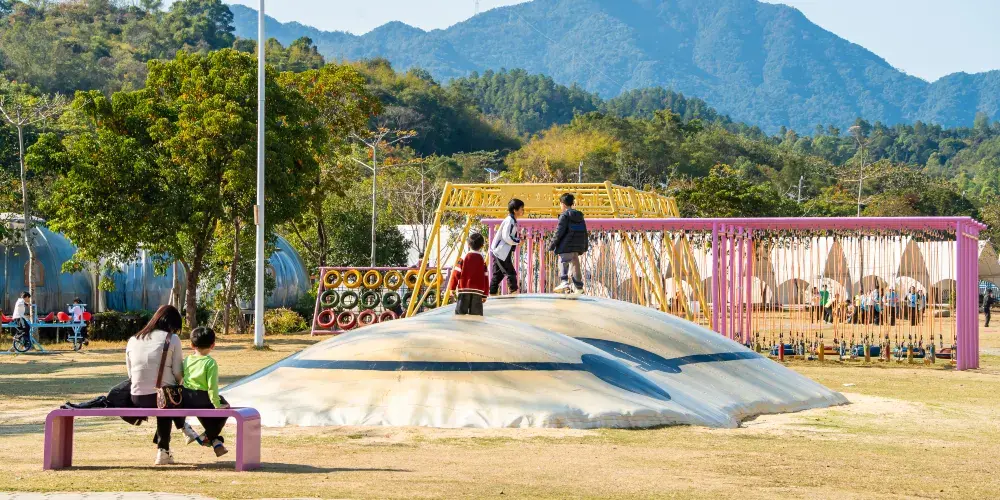△無動力樂園:輪胎攀爬網、熊貓蹦蹦雲、吊裝橋、龍舟鞦韆、六人單車,唔使充電都可以玩到盡興!