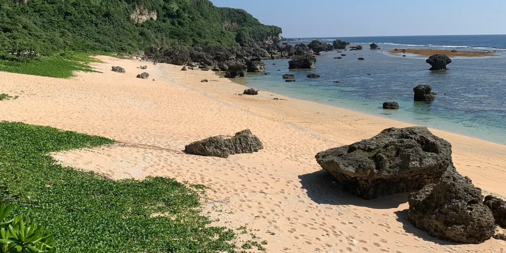 新城海岸,沒有寫在guide book上的秘密人氣海灘,每年夏天有10萬多遊客來此,這裡停車場、淋浴、更衣室、衛生間都是免費開放的,停車場也擴建到能容納100多輛車!兩首空空來就OK,這邊有水上用具租賃,當地特色料理,宮古島牛肉咖喱飯很有人氣!