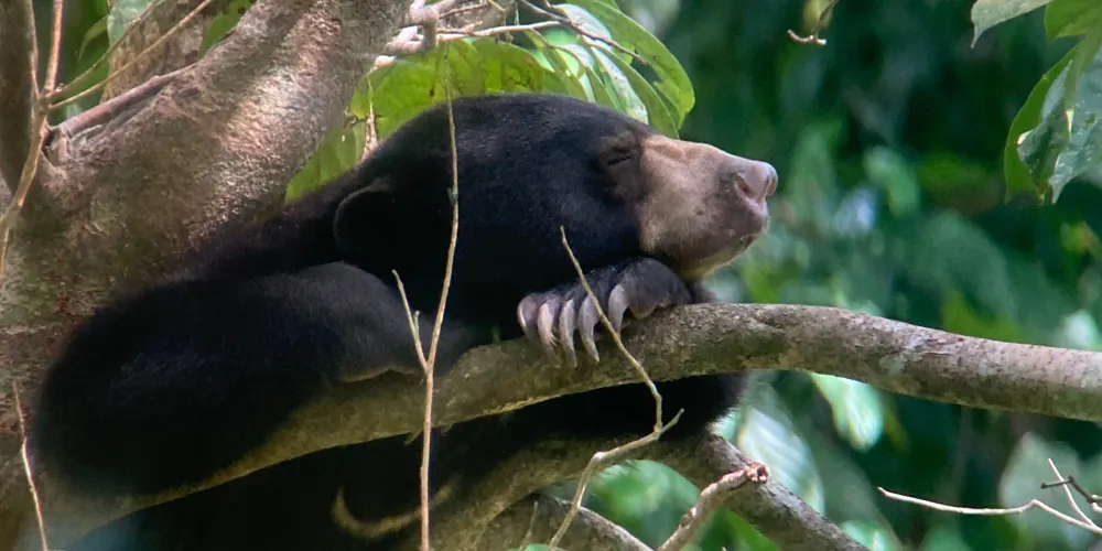 太陽熊是全球較小的熊類物種,也是瀕臨絕種的熊類物種。因胸前有一撮明亮的毛髮而得名,太陽熊雖然可愛,但也有利於築巢的鋒利的爪。由於棲息地逐漸消失,因此太陽熊面對決戰的危險。