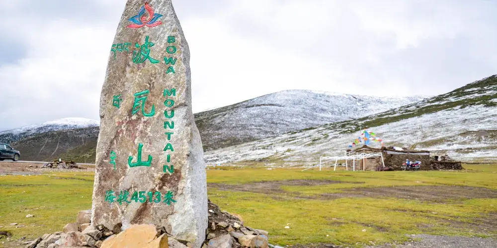 理塘與稻城兩縣之間波瓦山穿過花海無邊,牛羊成羣的色拉草原,就到了波瓦山腳、波瓦山藏語意為“英雄、勇敢的山”。波瓦山北坡發現“樹葉”化石,具有很高的科研價值。沿着盤旋的公路。到山頂處,將會看見無數祈禱的經幡,藍的代表天空、白的代表白雲、黃的代表土地、綠的代表清水、紅的代表火焰。