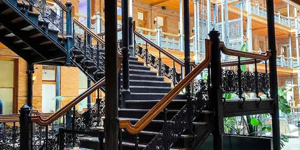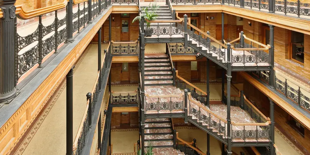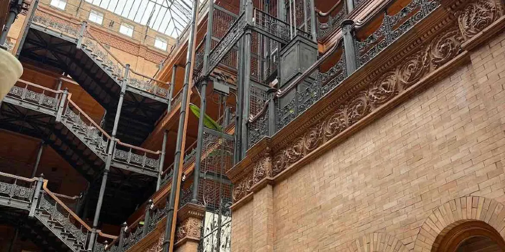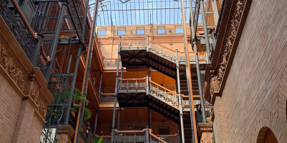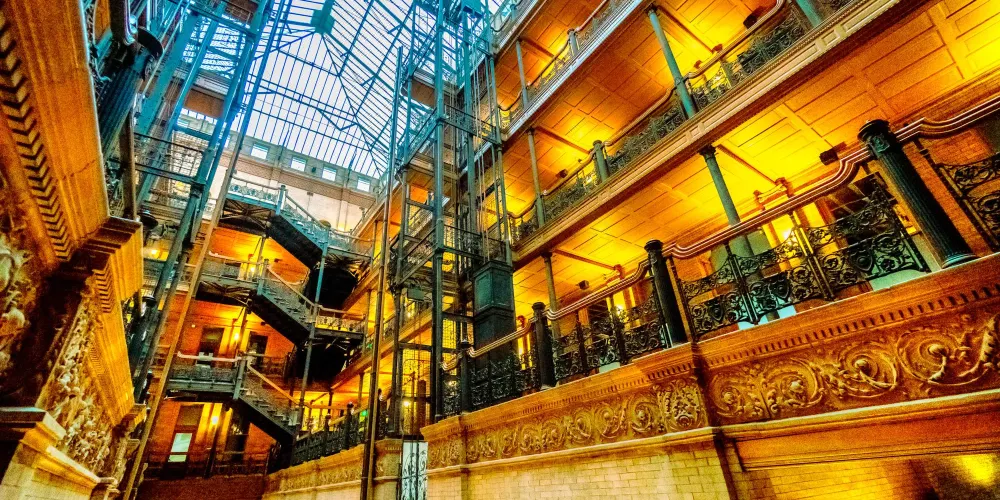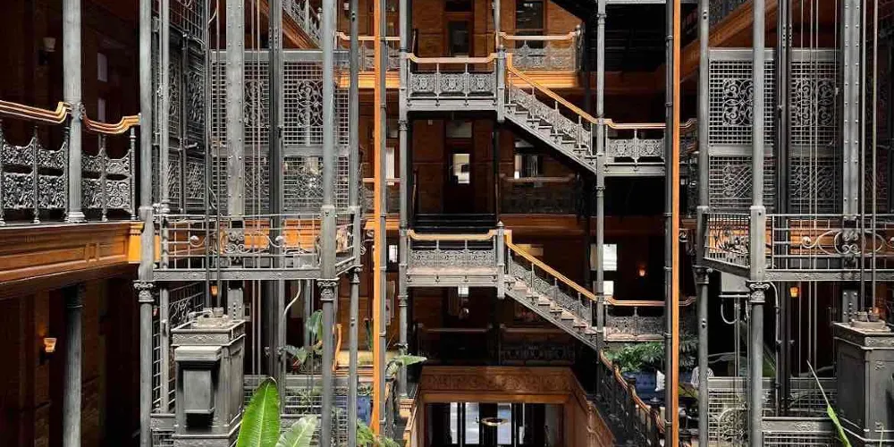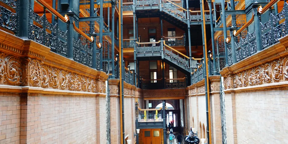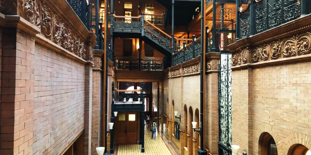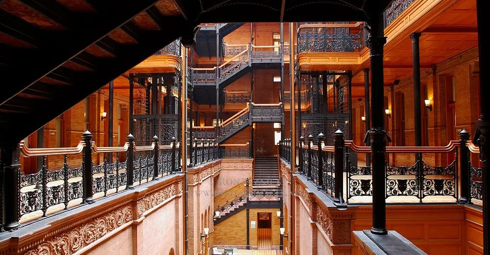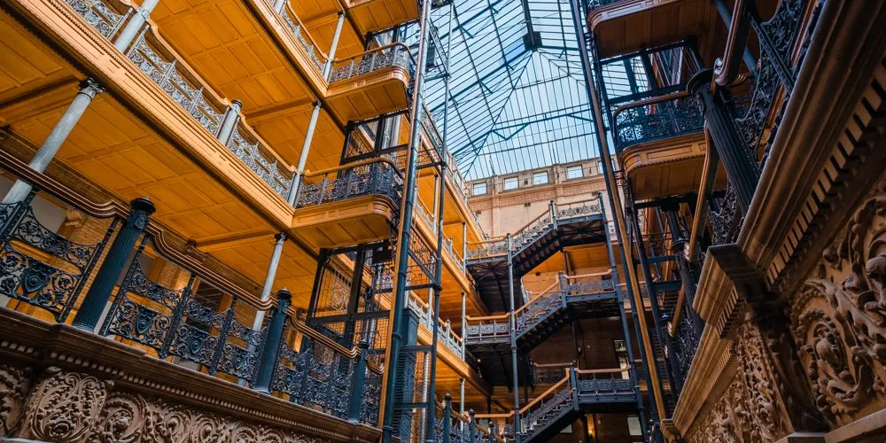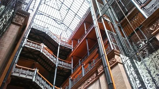 布拉德伯裏大樓建於1893年,也是洛杉磯的建築地理標誌之一。整個建築從外部結構到內部裝潢都透出意大利文藝復興風格。樓梯所用的大理石產自比利時,而地板則是墨西哥風格。來自各國的創新元素結合在這裏,形成了這座大樓獨特的建築特色。