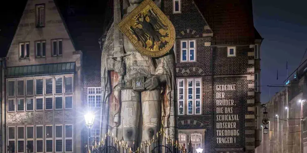 這座高5.5米的羅蘭騎士雕像建於1404年,迄今已有600年的曆史。因為不來梅市政廳和羅蘭騎士雕像象徵了神聖羅馬帝國發展市民自治權和主權,是公民自治和自由市場的傑出體現,所以在2004年7月二者被列入了聯合國教科文組織的世界文化遺產名錄。