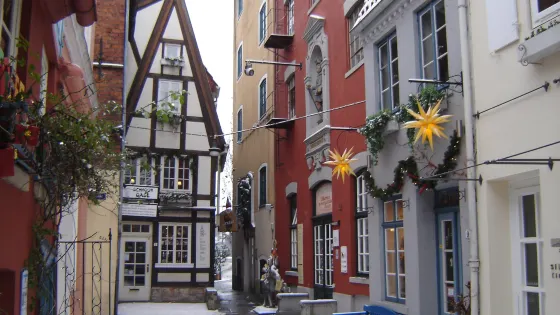 施諾爾小區是不萊梅古老的城區。始建於15世紀的玲瓏樓屋,像繽紛的彩珠一樣鑲嵌在這裡。音樂鐘樓數百年來一直定時奏響樂曲,左側牆向的大窗戶就會自動開啟,轉動著一幅幅曆史上航海家橫渡大洋的故事。