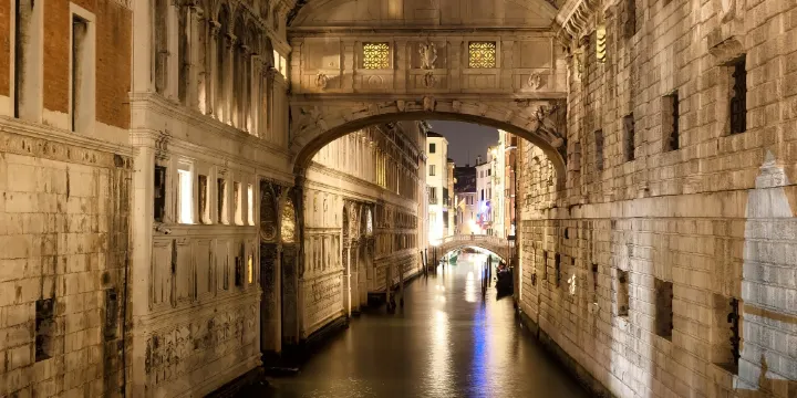 嘆息橋建於1603年,造型屬早期巴洛克式風格,橋呈房屋狀,為了避免路人觀看,橋被封閉得嚴嚴實實,只有向運河的一側開著兩個小窗。傳說,一名死囚看見從前的戀人在橋的另一端與新歡親熱,不禁深深嘆息。嘆息橋從此成為了戀人見證愛情的地方,據說戀人們在橋下接吻就可以終生相守。電影《情定日落橋》就是在這取景的。