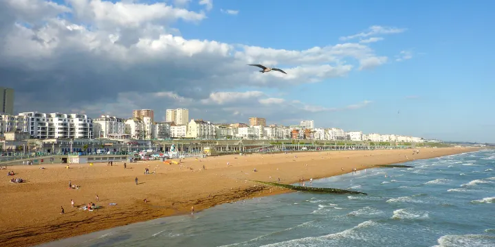 和許多英國海濱城市一樣,布萊頓的海灘也有著當地最休閑、最遼闊的自然風光。然而這裡與眾不同的是踩在腳下的並不是細細軟軟的沙,而是獨特的鵝卵石。还有,一般天氣好的時候說不定會看到如初生嬰兒般的人們,褪去所有的“偽裝”,彷彿亞當和夏娃仍舊在伊甸園裡幸福地生活,不曾偷吃禁果,不分善惡羞恥,最接近自然與上帝。