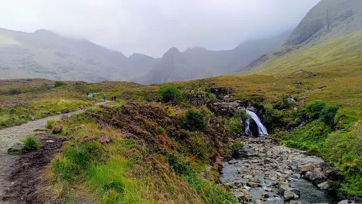 則評價仙女池兩邊開滿了燦漫的紫色花卉,多的美不勝收,包圍住了仙女池的所有,狹長而蜿蜒的仙女池便從這浪漫的紫色山花中穿過。每到天空放晴時,温暖明媚的陽光便穿過厚厚的雲層灑落斯凱島,島上有高山、丘陵、河流和海岸線,這時便會立即呈現出迷人的色彩斑斕,很多小村莊寂靜安寧,錯落有致地點綴在陽光與霧氣之中,充滿了原始與野性的美麗色彩。