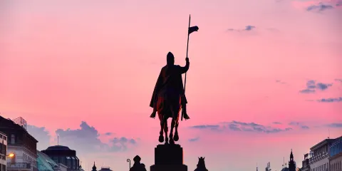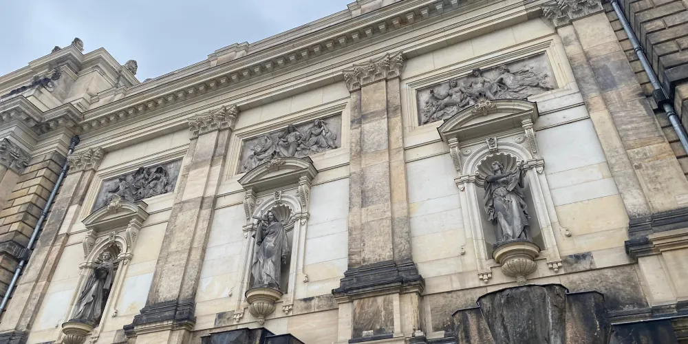 茨溫格宮外牆上有一幅101米長的瓷器壁畫——王侯出征圖,被稱為世界最大的陶器藝術品。展示了從1127年到1876年薩克森的三十五位統治者騎馬出行的雕像(雕像的下端標有他們的姓名),還有有隨行的科學家、藝術家、工匠、士兵、兒童和農民,總共九十四人,人物生動、栩栩如生。