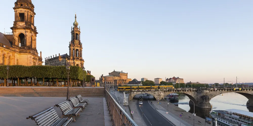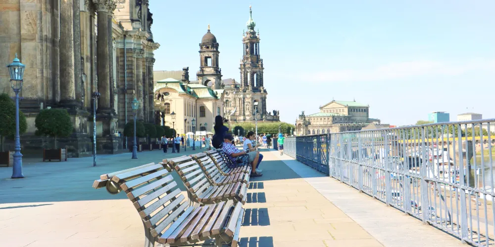 布呂爾平台(Brühlsche Terrasse),非常推薦的德累斯頓的景點,從西邊的城堡廣場走入平台,二層可以欣賞易北河岸的景色,也可以眺望整個德累斯頓的景色,包括宮廷教堂、不遠處的森帕歌劇院,也是拍照的絕佳地點。如果天氣晴朗,可以在這裡喝杯咖啡,小坐休息放鬆一下。