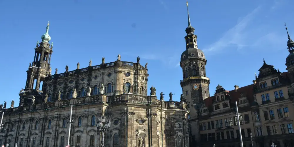 德累斯頓王宮是德國最為恢弘、重要的宮殿建築之一,1485年起便是曆代撒克森王國統家族的居住地,也是當時該地區的政治權力中心。宮殿在二戰中曾一度毀於戰火,之後按照原貌複原重建。這座宮殿建築融合了多種建築藝術風格,鵝黃色的外牆配上紅色屋頂和青銅色的圓頂,頗為雍容華貴。新建的封閉中庭的玻璃球形穹頂十分特別,這裡設有售票處、紀念品商店、咖啡館,免去遊客以往須在露天排隊等待的困擾。