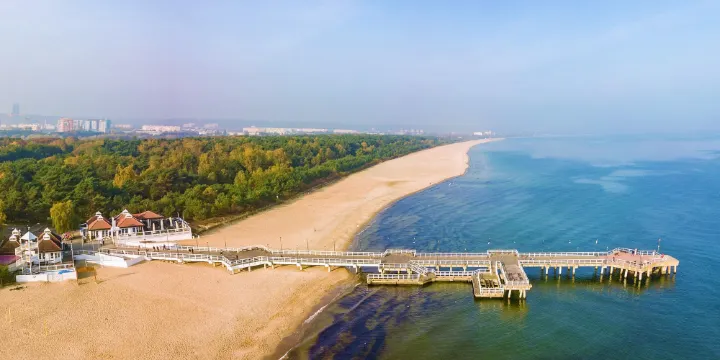 布熱茲諾碼頭位於波蘭格但斯克市的布熱茲諾區,是波羅的海沿岸一個受歡迎的旅遊和休閒景點。漫步在碼頭上,遊客可以欣賞到波羅的海的壯麗景色,尤其是在日出和日落時分,海天一色,景色尤為迷人。碼頭上設有長椅和觀景台,是遊客放鬆和欣賞自然美景的理想場域。除了自然風光,布熱茲諾碼頭附近還有許多其他景點和活動。遊客可以在附近的海灘享受陽光和海水浴,適合家庭和朋友一起度過休閒時光。海灘上設有各種設施,包括沙灘排球場和兒童遊樂區,為遊客提供了豐富的活動選擇。因此,格但斯克布熱茲諾碼頭不僅是欣賞波羅的海自然美景的好地方,也是體驗波蘭海濱文化和休閒生活的好地方。