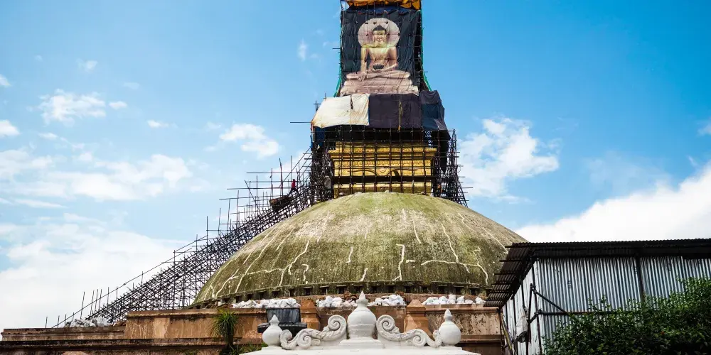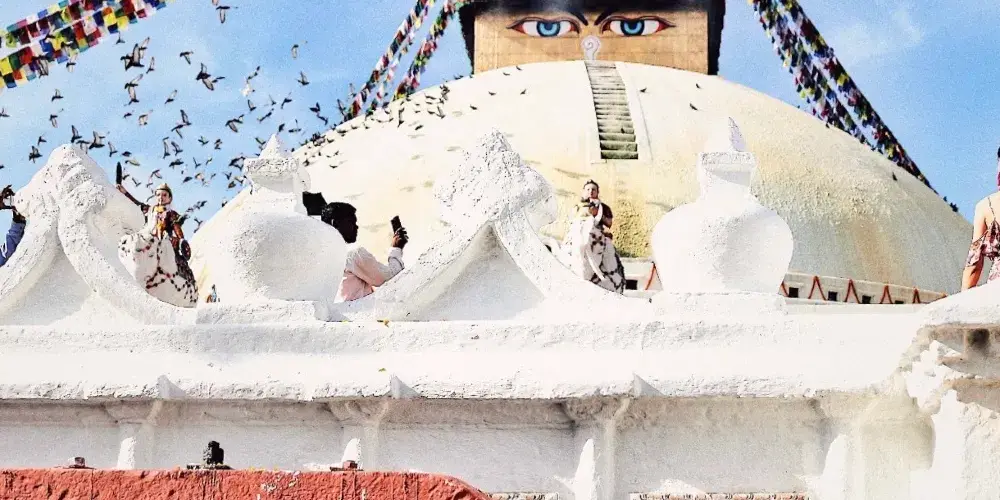 博達哈大佛塔是尼泊爾的地標建築,坐落於加德滿都東北方向,是全世界規模較大的圓佛塔,也是聯合國人類文化遺產。它擁有白色巨大的穹形,在宏大的白色覆缽上有個方形塔,四面都畫有巨大的佛眼,表示佛法無邊,無所不見之意。佛眼上面是座金色的尖塔,塔基外緣刻有阿彌陀佛的小浮雕。