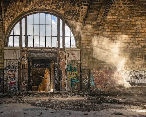 水牛城中央車站是曾經紐約中央鐵路公司在布法羅的樞紐車站,距離距離布法羅市中心4公里。始建於1929年的中央車站高達69米,有着和布法羅市政廳一樣為裝飾藝術風格。50年代後,布法羅的衰落使得車站客流大量減少。1979年這裏停止了客運服務並與1986年完全關閉。
