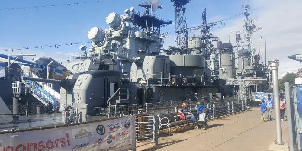 布法羅海軍及軍事公園位於布法羅市區伊利湖畔。與其說是公園,這裡更像是博物館。而這裡的「展品」就是停靠在岸邊的是3艘靠岸在布法羅河裡的軍艦:克里夫蘭級USS Little Rock號巡洋艦,Fletcher級USS The Sullivans號驅逐艦和USS Croaker潛艇。沿岸的草坪裡還矗立著各類紀念碑和飛機等。對於軍事迷來說,這裡是你必去的景點之一。
