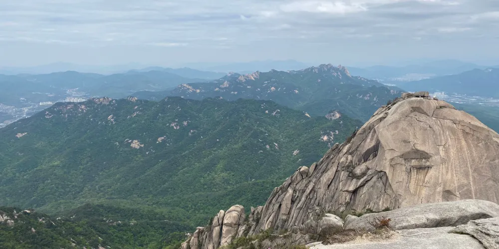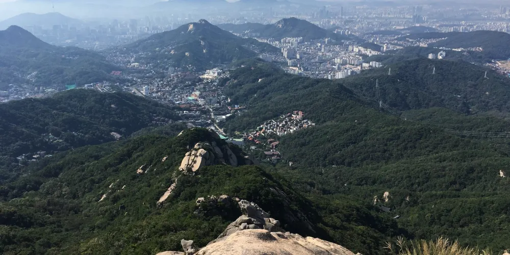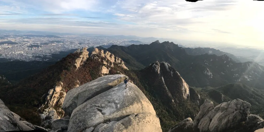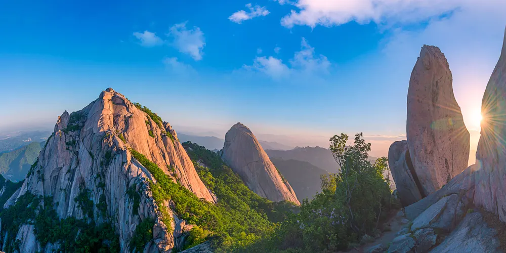 北漢山國立公園,1983年被指定為國立公園,與京畿道和6個區接壤。北漢山的意思是北面最大的山,也被稱為三角山、負兒岳。巨大花崗岩形成陡峭曲線是北漢山的最大特點,高聳的岩峰和岩峰間流淌著的清澈溪谷斷然可見。