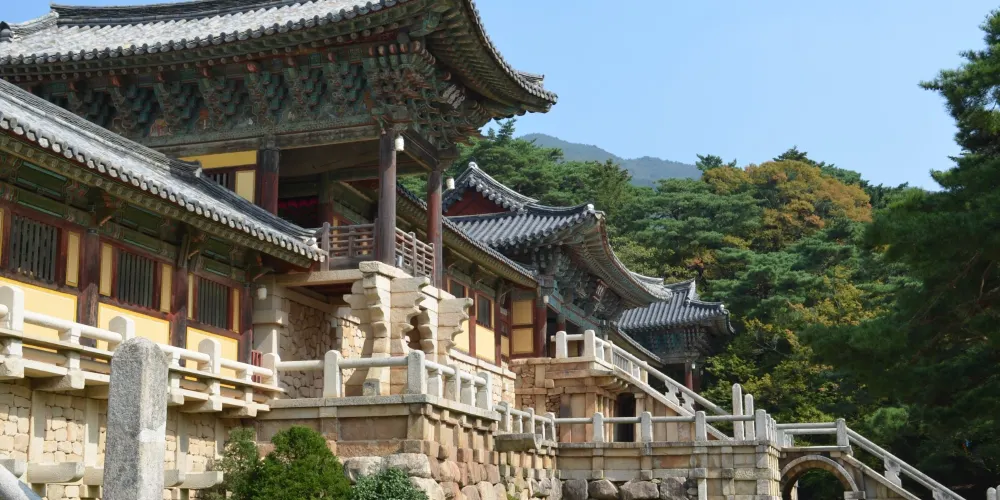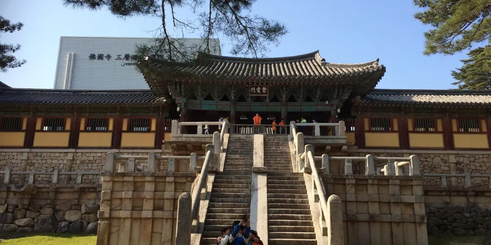 佛國寺是新羅文化的核心,是新羅佛教藝術的經典,是世界文化遺產。1440年前,新羅法興王22年,為維護國家安定和百姓平安,建造了佛國寺,後來幾經修繕。在佛國寺裡,沿著山脊往上走就能看到有名的石窟庵,裡面有面朝東海的東方最大的如來坐像。