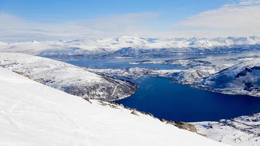 峽灣小鎮位於挪威特羅姆斯郡西海岸,是北極圈內備受推崇的自然景觀與極光觀測地。這個峽灣村被群山環抱,U型峽灣由冰川侵蝕形成,冬季積雪覆蓋的峰巒與深藍海水構成明信片般的畫面,夏季則因極晝現象呈現苔原植被與白樺林的生機。