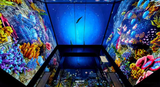 △ 天空遊輪從1樓高速移動到100樓,讓您搭乘電梯,像熱氣球一樣飛向天空,探索奇妙的海底,享受奇妙的運動時刻。