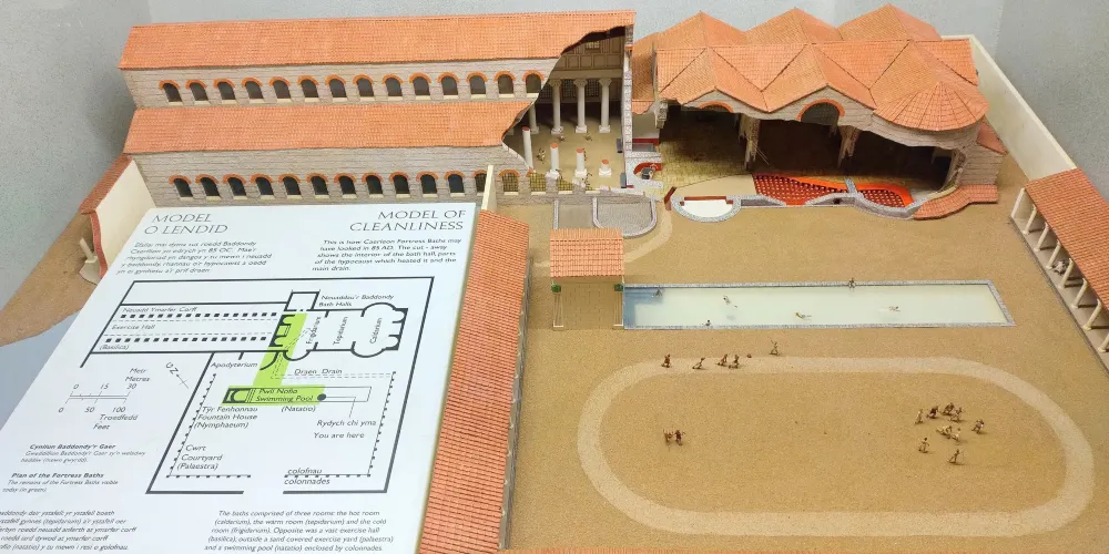 卡利恩古羅馬要塞位於威爾士南部,這裏曾是奧古斯第二軍團的所在地,曾有5000兵馬在此駐紮,如今這裏出土了大量古羅馬遺跡。來到這裏,可去要塞浴場博物館參觀,巨大的原型競技場和古羅馬軍營也全年免費對公眾開放。現在圓形劇場已經被毀壞,衹剩下一些殘存下來的高台。在公共浴場附近設有羅馬軍團博物館。這裏麪展出許多珍貴的展品,裏面有被挖掘出來的珍寶,甚至還有小孩的牙齒,可幫你瞭解羅馬歷史。