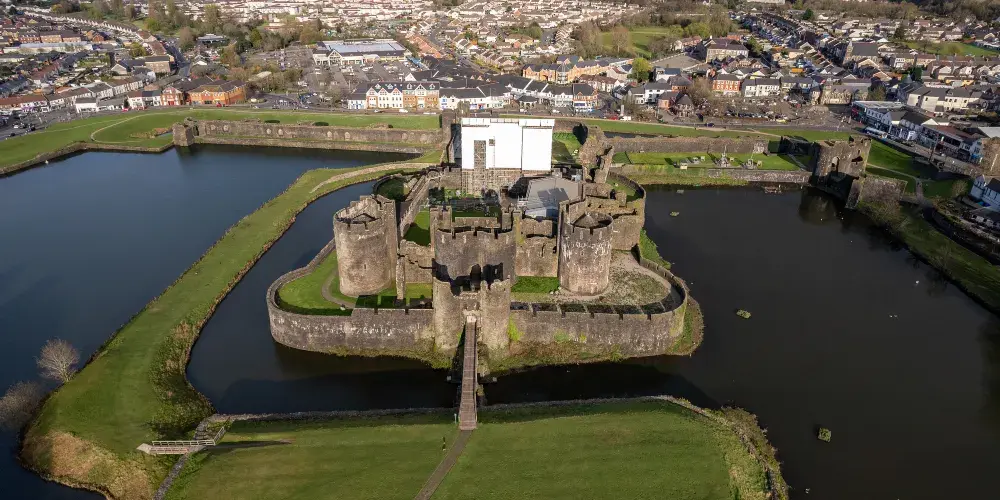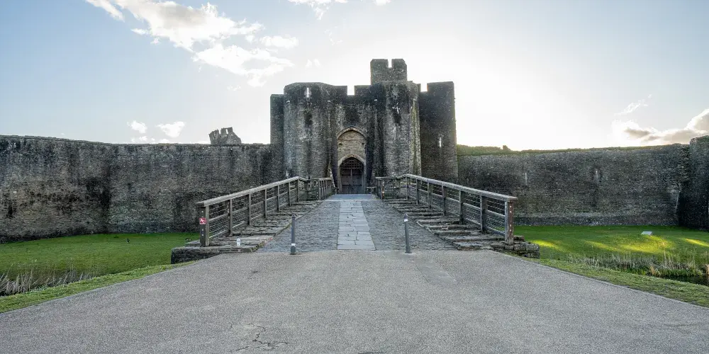 卡菲利城堡位於鎮中心,是威爾士規模較大、英國較大的城堡,僅次於温莎城堡。與許多其它威爾士城堡不同,卡菲利城堡並不是愛德華一世統治威爾士時期修建的,而是一位諾曼貴族的後裔修建而成。城堡四面環水,其中一座向外傾斜的斜塔和意大利比薩斜塔類似,是非常搶眼的建築。近年來,卡菲利城堡也成了各種影片和電視劇親睞的取景地,BBC熱播的《梅林傳奇》就是在此拍攝的。