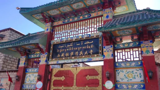 則評價拉薩清真大寺位於拉薩舊城東南河壩林回族聚居區的東孜蘇路,教堂大門上端用阿拉伯文、藏文、漢文寫有“拉薩清真大寺”的字樣,清真大寺禮拜殿敞廳內懸掛有“清真古教”的匾額。