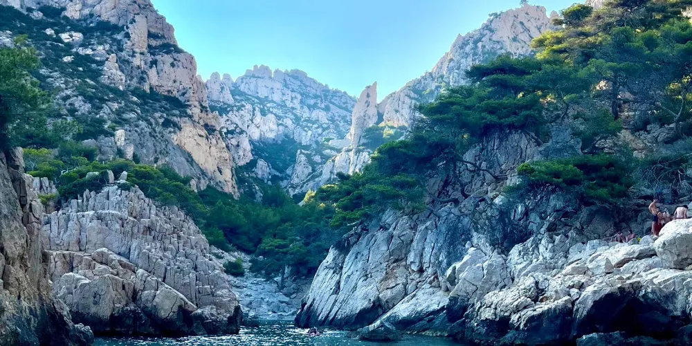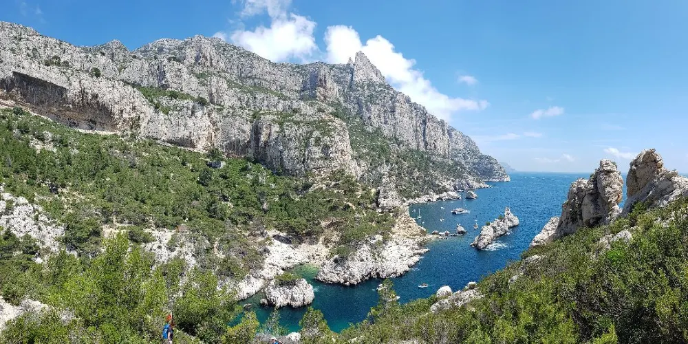 Calanque de Sormiou是Les Calanques中最適合攀岩的峽灣,此地山勢特殊、土壤覆蓋面小,灰白岩石中生長出堅韌的植物,十分神奇。因此許多登山愛好者、攀岩熱衷者都會來這裡,爬到山頂可以遠眺馬賽市區。