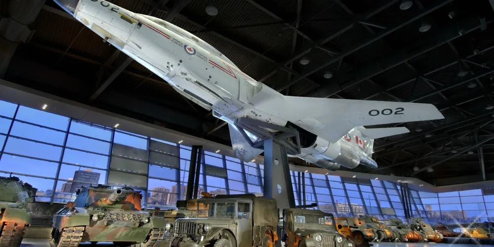 加拿大戰爭博物館是當地較大的收藏有關戰爭物品和資料的博物館,也是世界上三個很重要的戰爭藝術收藏場館之一。展示當今前衛的武器聲光設備,及從印第安人早期防禦戰的武器到第一、二世界大戰的武器、軍服,和海陸空三軍戰備實物展出,也有各型子彈、針頭甚至戰區急救醫用用具,用聲音和圖像使其展示的內容生動、多彩。博物館建築風格很有特色,整體建築向東部漸漸走高而成艦頭之狀,酷似一艘威武東行的戰艦,館內8個廳中主要的有4個展廳,其中較搶眼的是「第二次世界大戰」展廳。兩幅大銀幕放映二戰期間歐洲戰場和亞太戰場一些真實場面。展廳的牆上掛著一些圖片史料,其中一幅是一個日本兵高高舉起戰刀砍向一個跪在地上,被蒙著雙眼綁著雙手的戰俘;另一幅圖是一群日本兵手持上了刺刀的長槍在刺殺著手無寸鐵的戰俘。