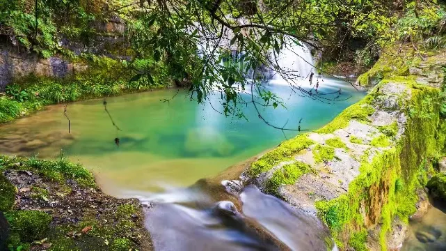 藏龍潭名聲不顯,美得安靜又低調正值炎熱之際,為你帶來清涼一夏、獨特的風景,感受不一樣的夏天。景區內生態環境優越,富氧離子豐富,特別適合爬山、溯溪等有氧運動在大自然間暢快呼吸,將濁氣一口呼出在喧囂繁華的都市之外感受凈土間的綠意盎然。