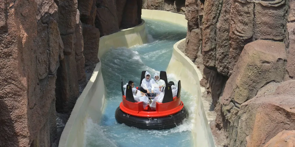 乘坐橡皮艇彷彿駛入非洲大裂谷,在險灣中順流而下,感受被波浪打濕的清涼,夏季的悶熱一掃而光。