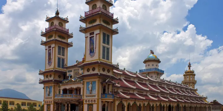 高台教由佛教、道教、天主教、印度教、儒教和伊斯蘭教等多種教義集合而成,高台教聖地的建築風格正體現了這一教義混合的特徵。高台教聖地又稱為大教堂(Great Temple) 或聖觀(Holy See),是胡志明市旅遊的熱門景點。