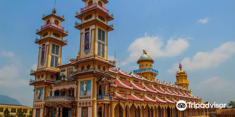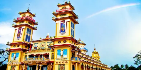 高台教聖殿位於越南西寧,是一座色彩繽紛的宗教建築,寺廟裡麪還有一個花園,非常美麗。