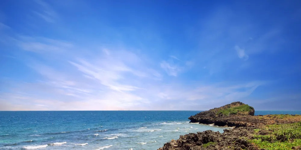 位於宮古島西北方的美麗海岬,從這裡可以看到著名的池間大橋,岸邊還有許多風車。